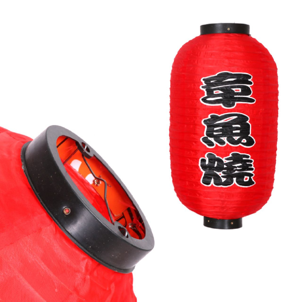 Китайский фонарь Цилиндр с надписью "Такояки" 30х55 см, красный