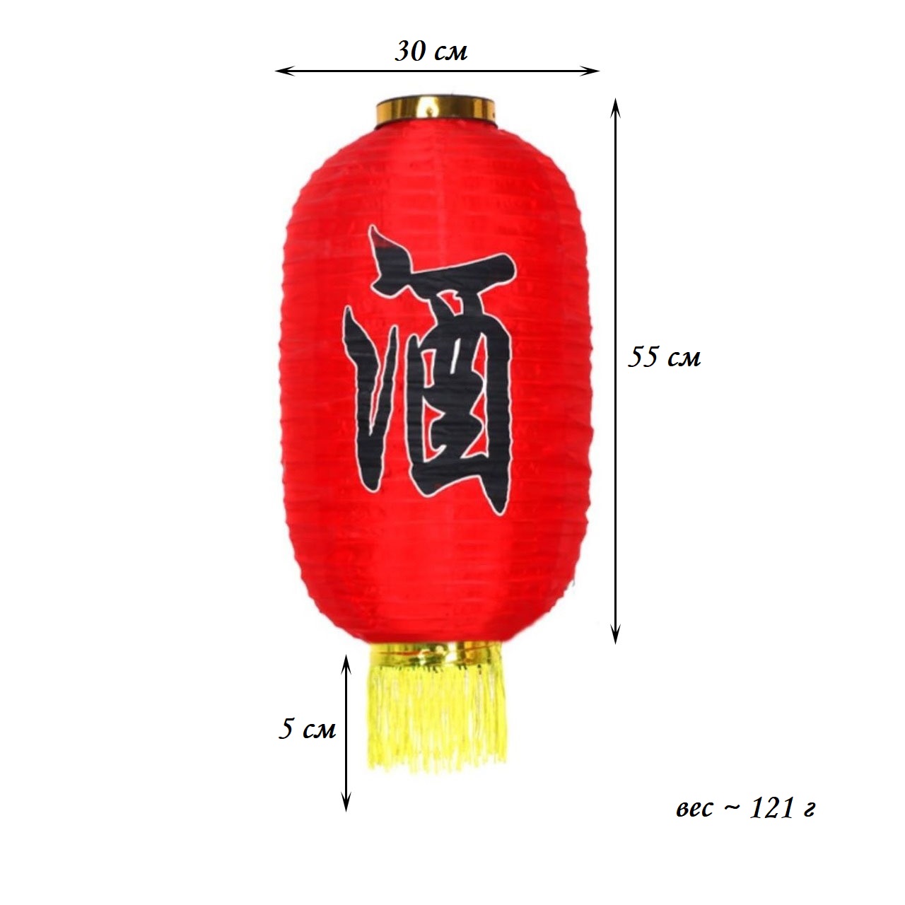 Китайский фонарь Цилиндр с надписью "Винный" с бахромой 30х55 см, красный