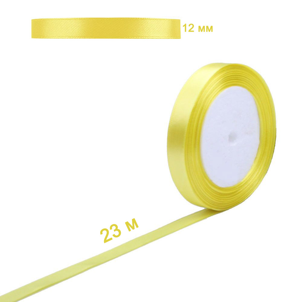 Лента атласная желтая 12 мм х 23 м