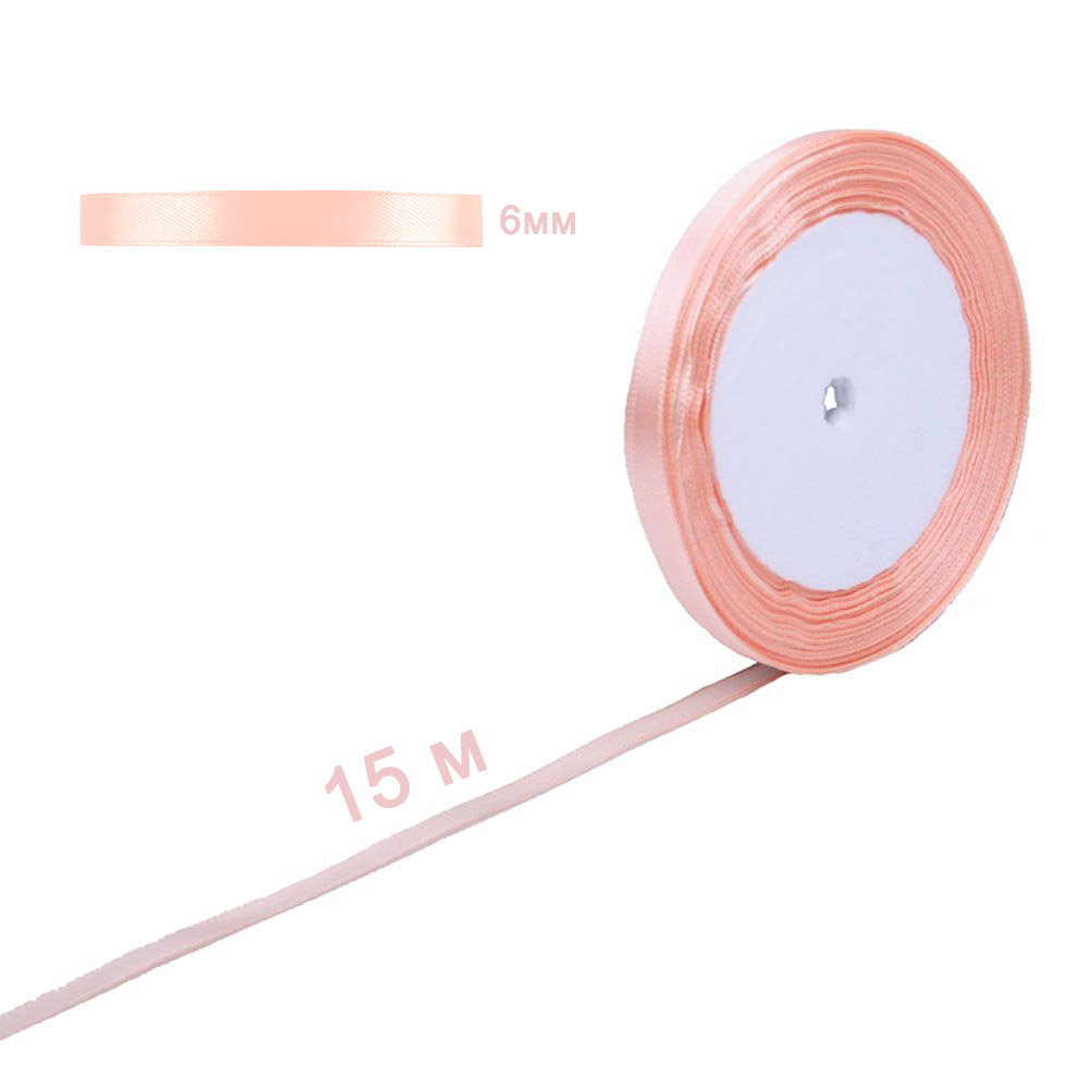 Лента атласная персиковая 6 мм х 15 м