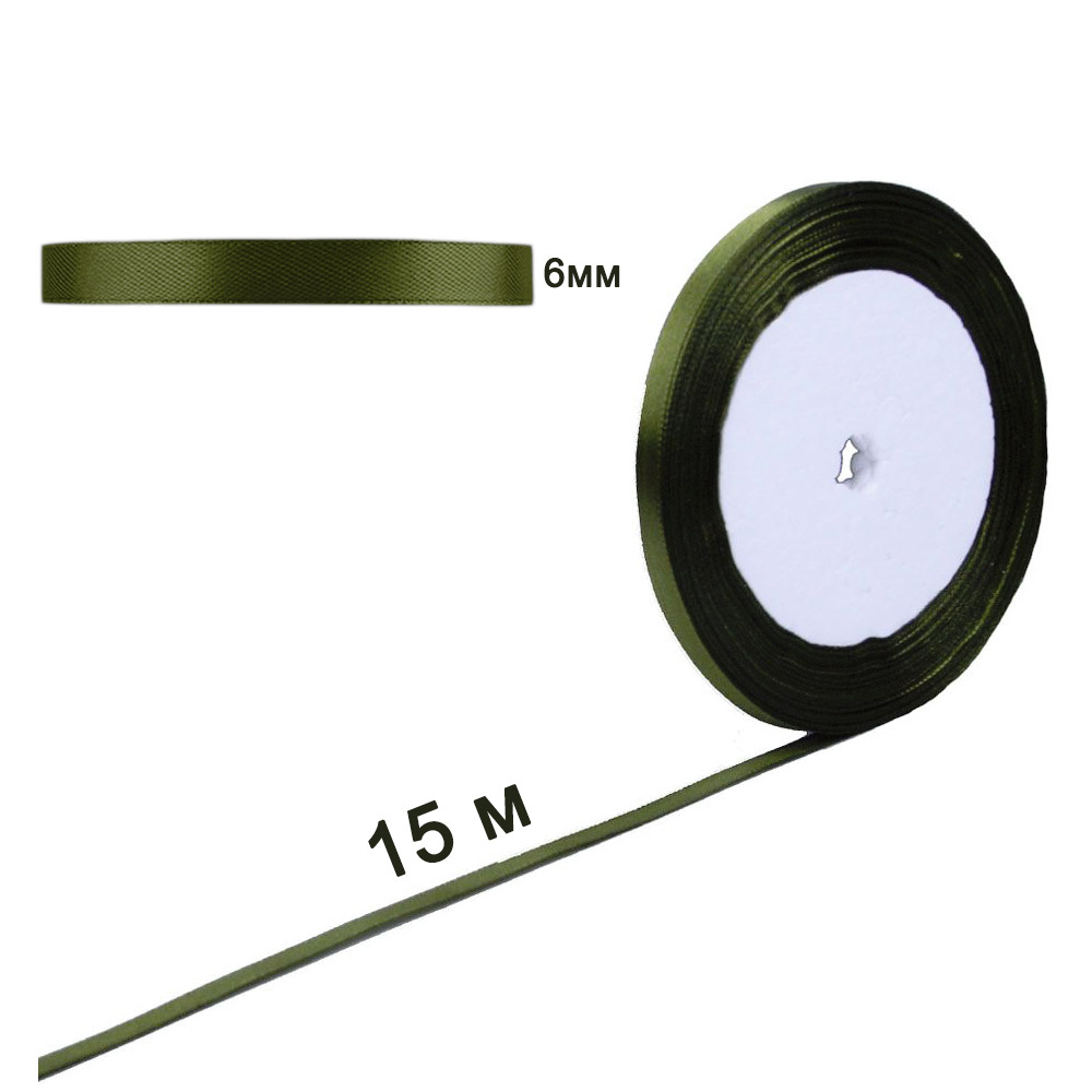 Лента атласная темно-зеленая 6 мм х 15 м