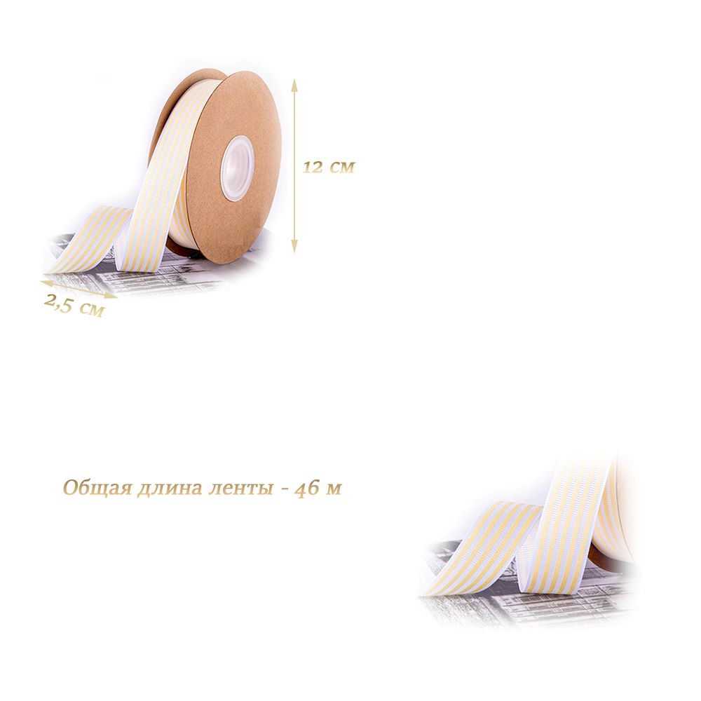 Лента репсовая желтая 2,5см х 46м
