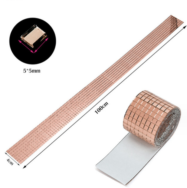 Лента самоклеящаяся зеркальная мозаика, из настоящих зеркал. Можно применять в качестве декорирования мебели, предметов интерьера, а так же подделок.