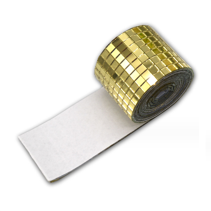 Лента самоклеящаяся зеркальная мозаика акрил 4см х 1м 5х5мм, золото
