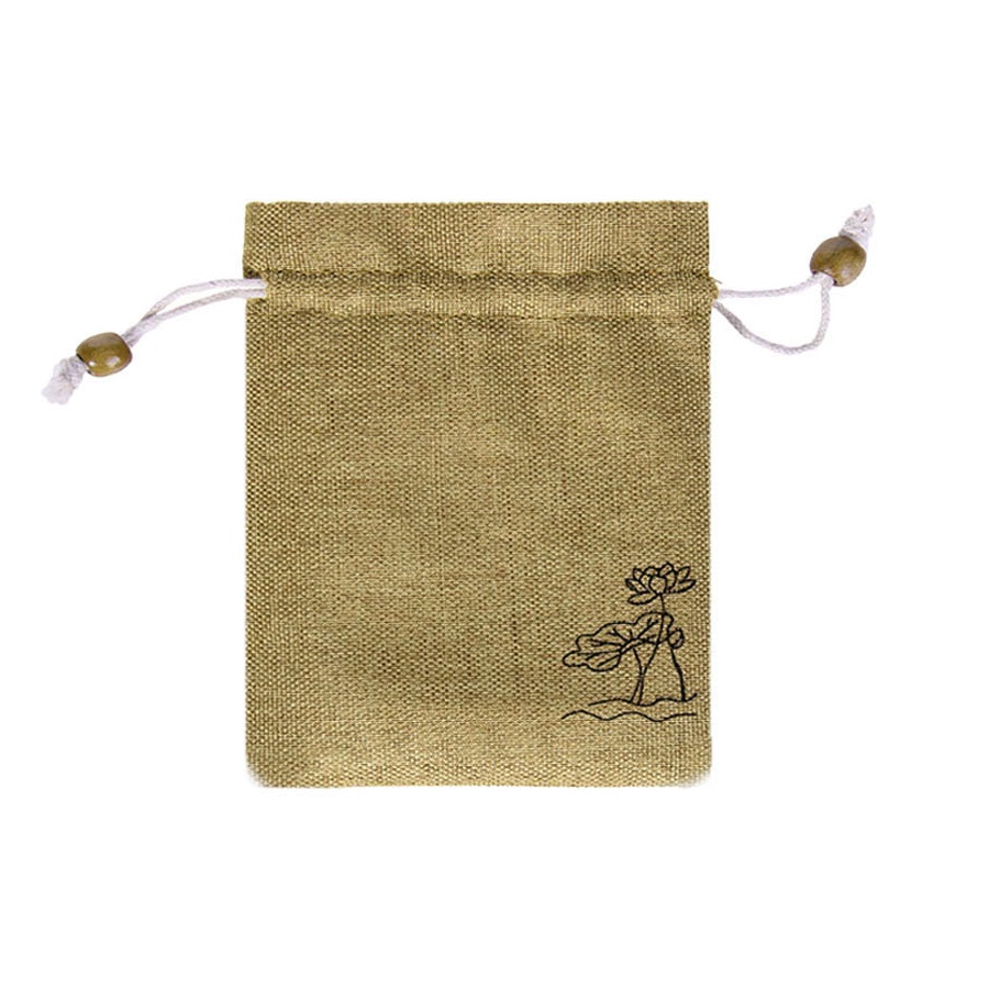 Мешочек из искусственного льна с орнаментом 14х19 см, песочный
