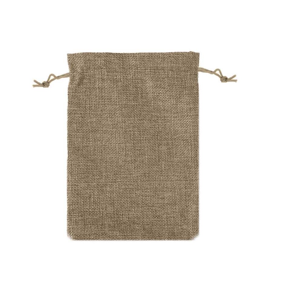 Удобный мешочек среднего размера для хранения подарков и разных предметов. Натуральная текстура мешковины придаёт изделию аккуратный и привлекательный вид, а шнурок-затяжка надёжно фиксирует содержимое.