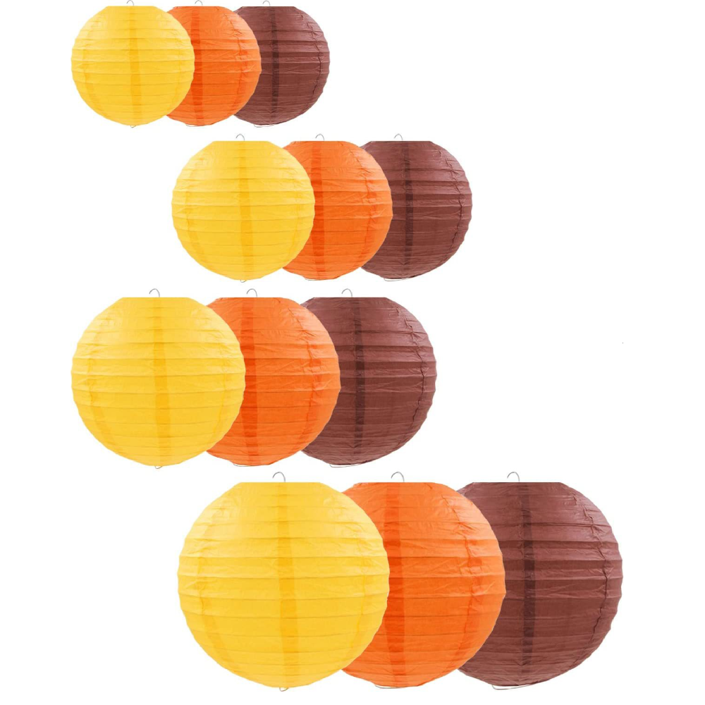 Набор подвесные фонарики 12 шт, желтый+оранжевый+коричневый
