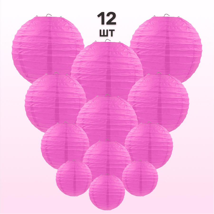 Комплект подвесные фонарики 12 шт малиновый