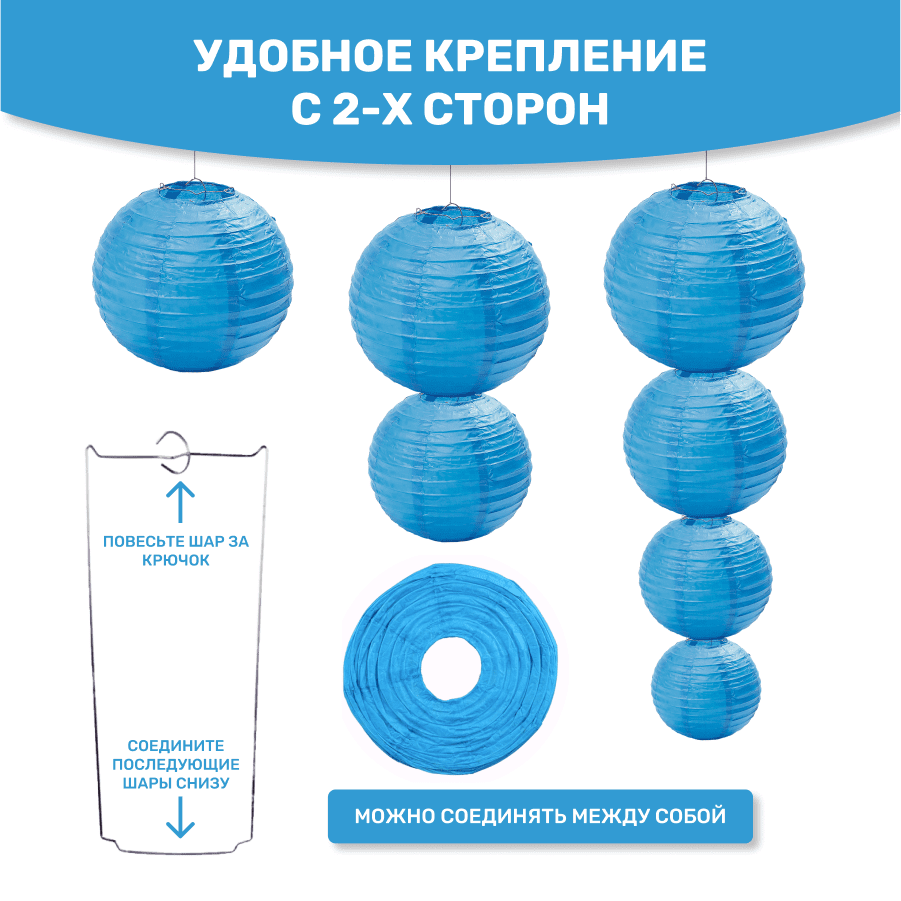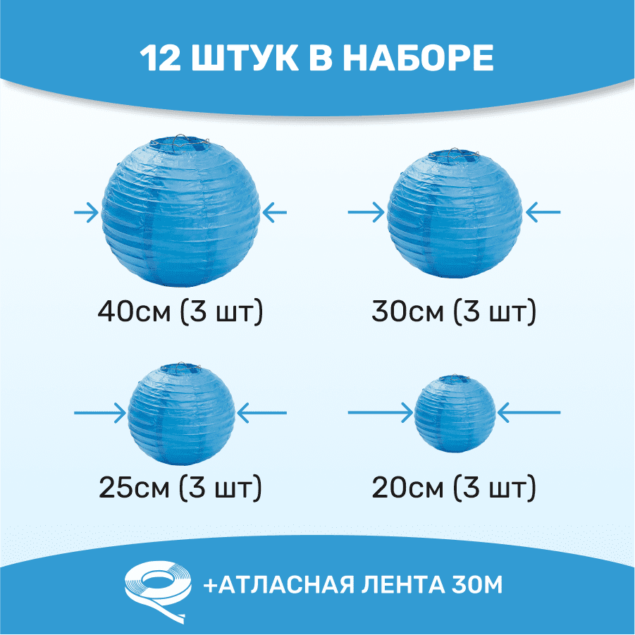 Комплект подвесные фонарики 12 шт синий