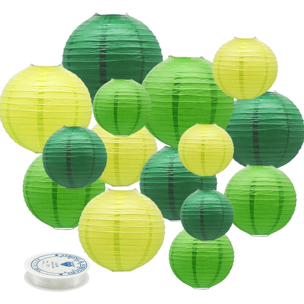 Набор подвесные фонарики 15 шт + леска, салатовый+зеленый+т.зеленый