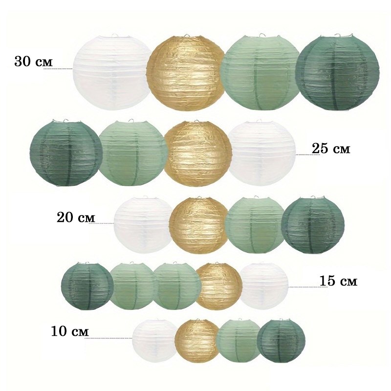 Набор подвесные фонарики 21 шт, белый+золото+фисташковый+т.фисташковый