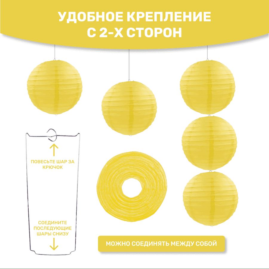 В комплект входит 8 бумажных фонариков и лента.