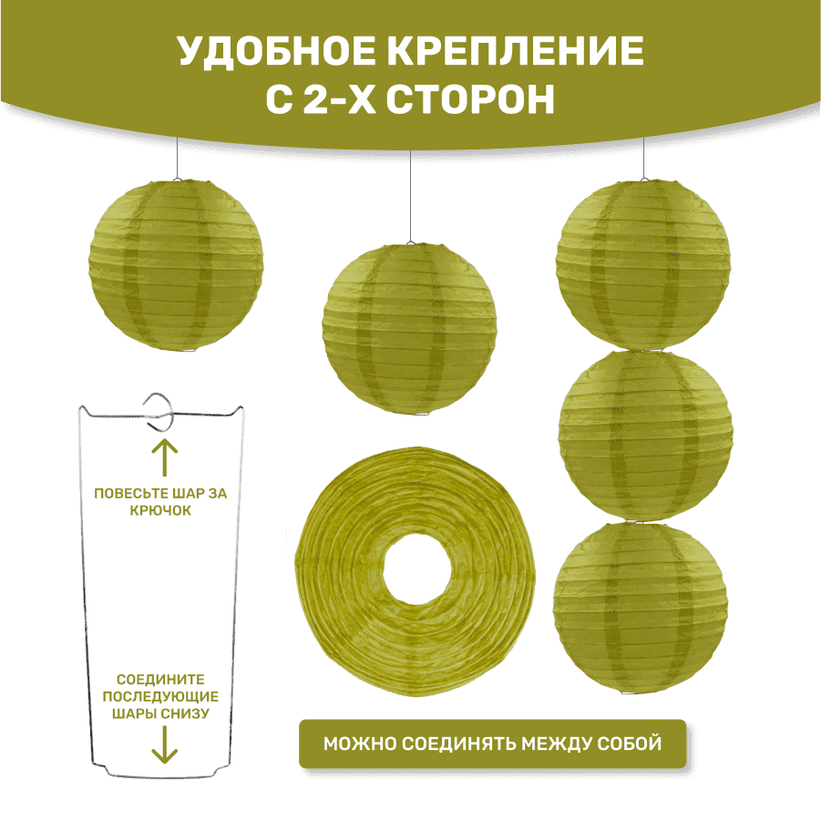 Комплект подвесные фонарики 40 см х 8 шт, фисташковый