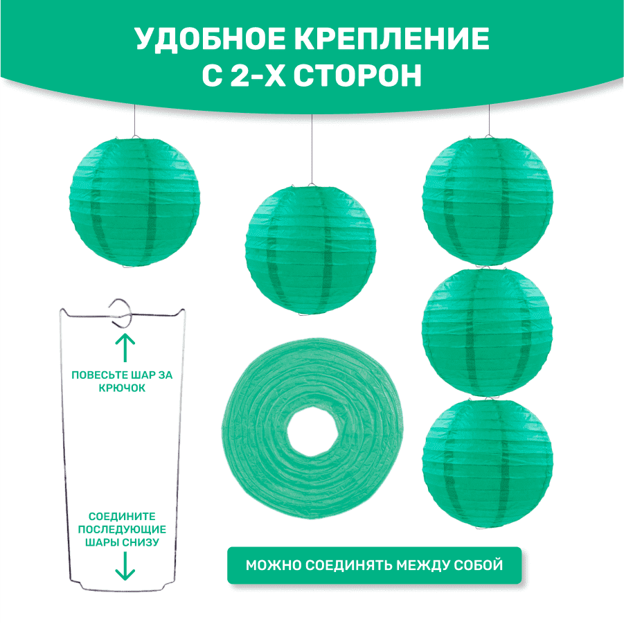 Комплект подвесные фонарики 40 см х 8 шт, изумрудный