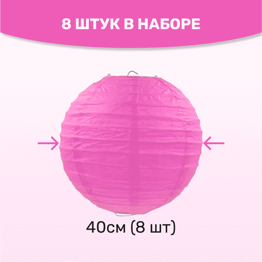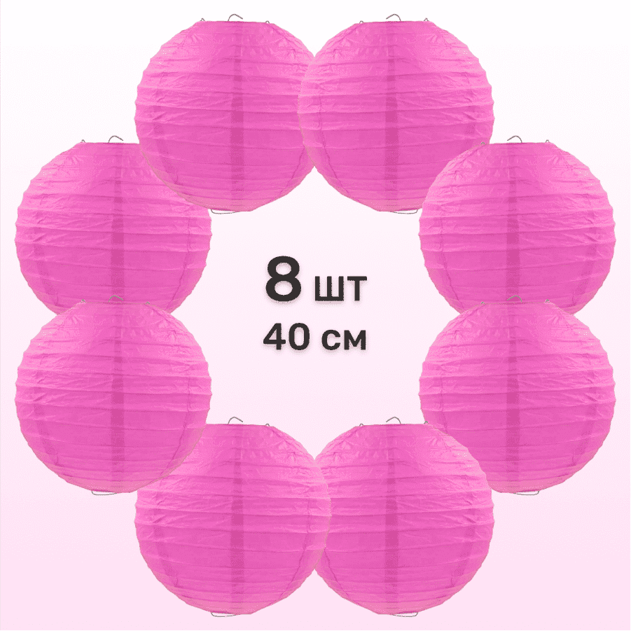 Комплект подвесные фонарики 40 см х 8 шт, малиновый
