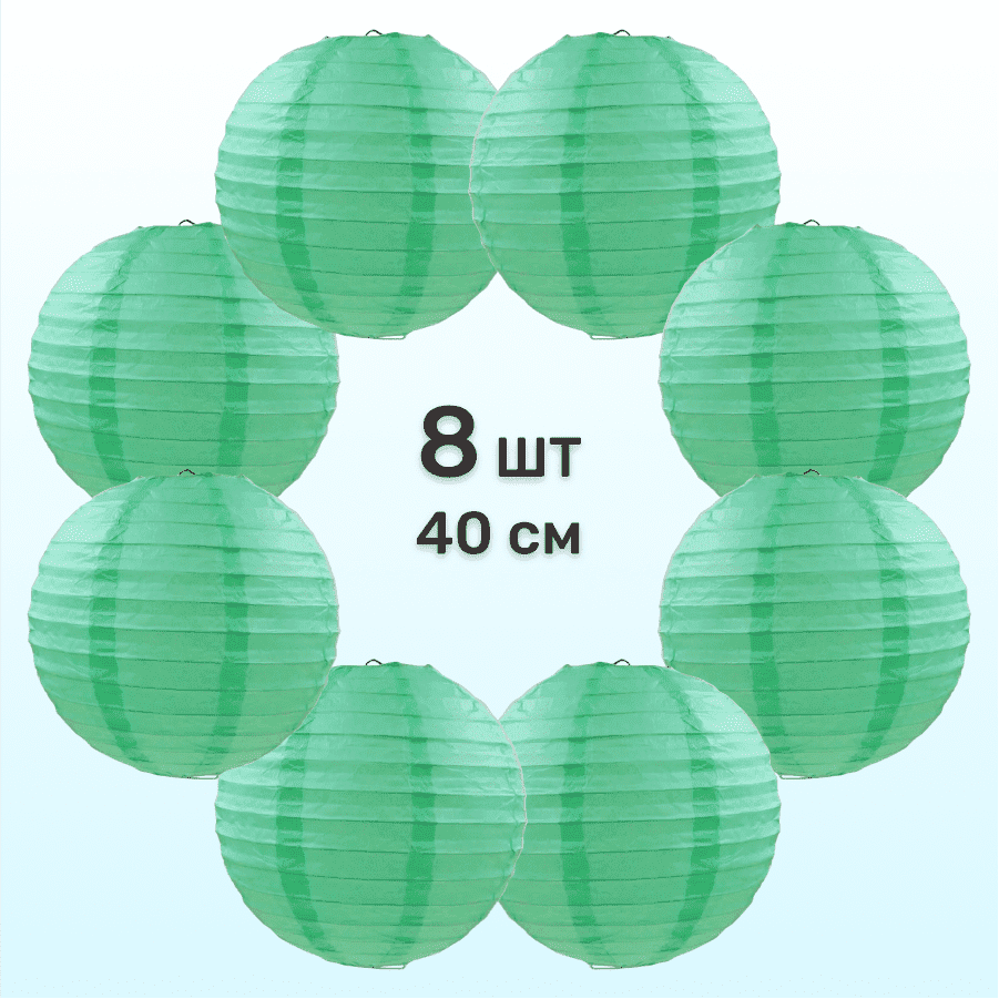 Комплект подвесные фонарики 40 см х 8 шт, мятный