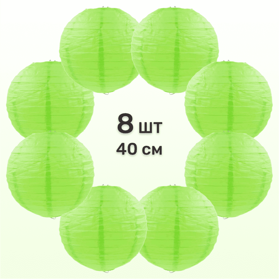 Комплект подвесные фонарики 40 см х 8 шт, салатовый