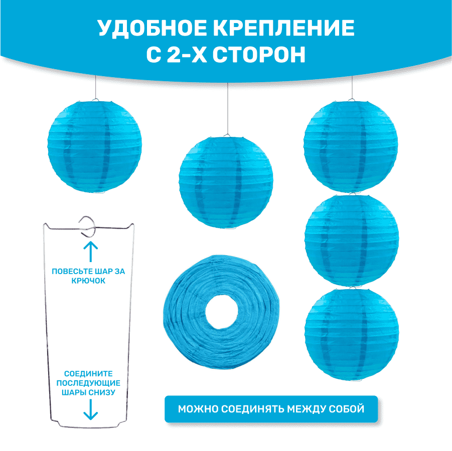 Комплект подвесные фонарики 40 см х 8 шт, синий