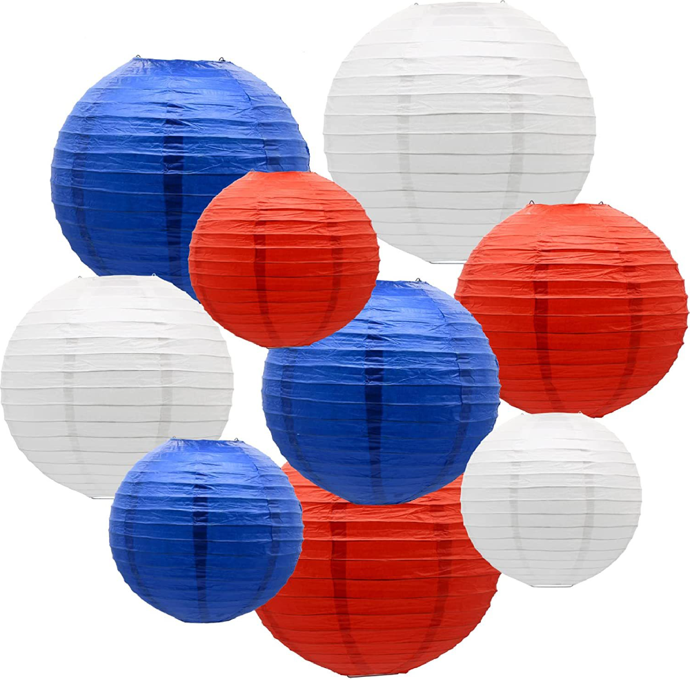 Набор подвесные фонарики 9 шт, белый+красный+т.синий