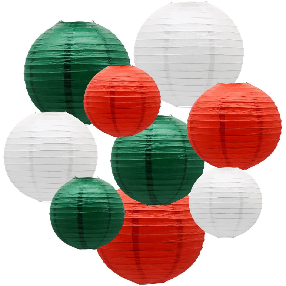 Набор подвесные фонарики 9 шт, белый+красный+зеленый