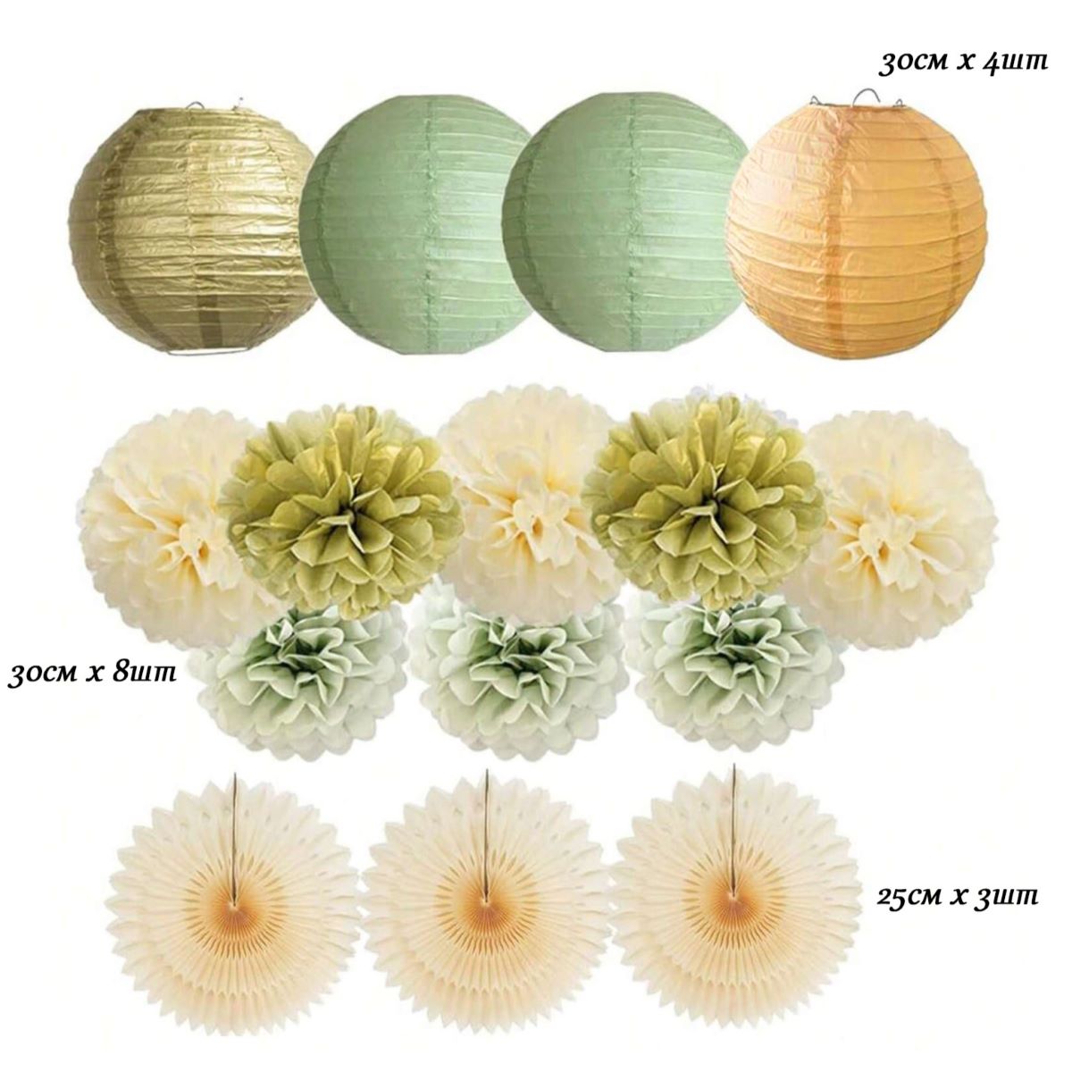 Бумажные подвесные фонарки, 4 шт: