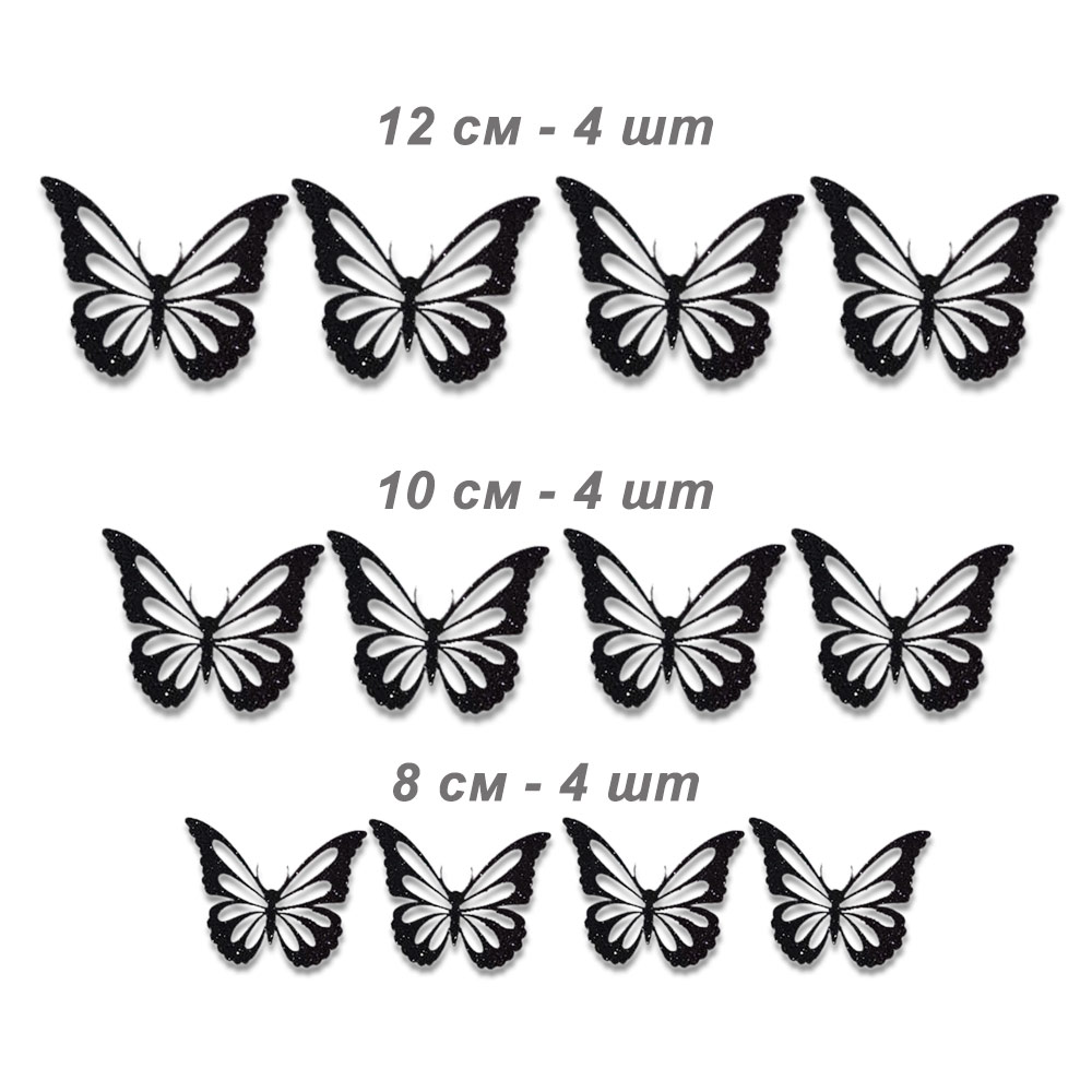 Наклейки Бабочки № 10 бумага перламутровая 12 шт черный