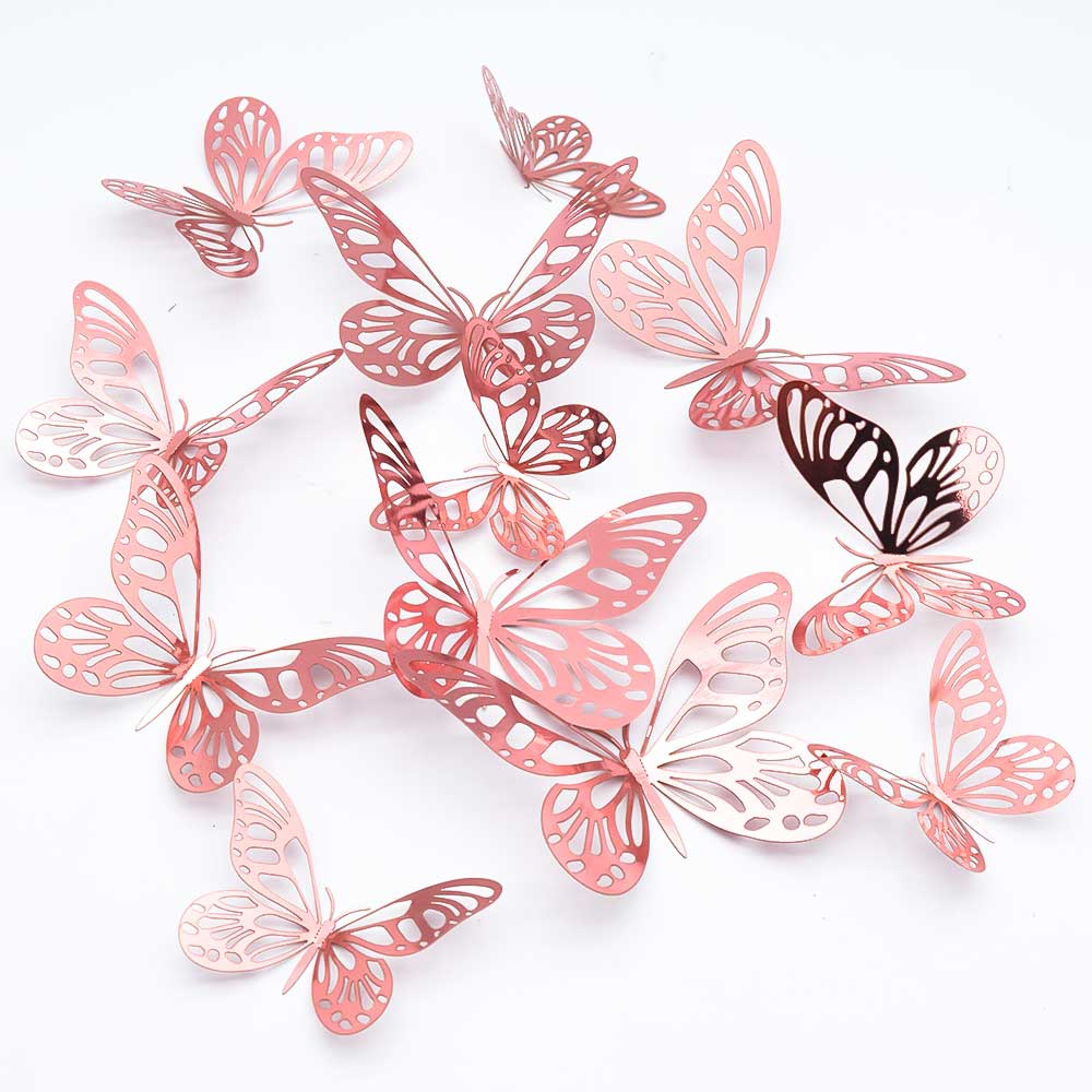 Наклейки Бабочки № 14 бумага металлик 12 шт розовое золото