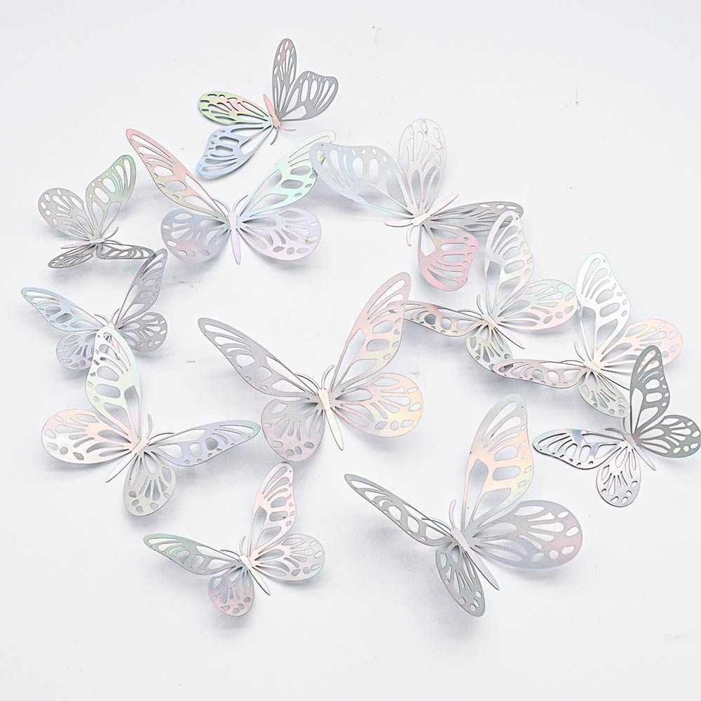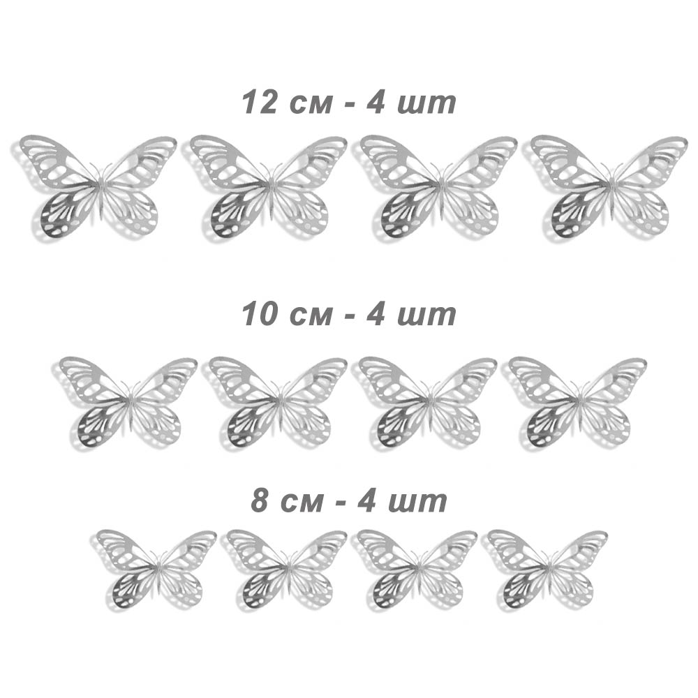 Наклейки Бабочки № 14 бумага металлик 12 шт серебро