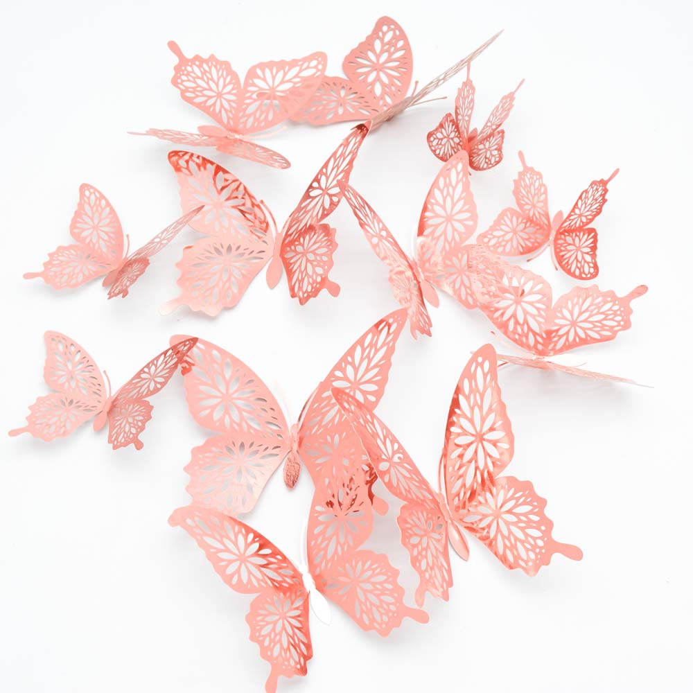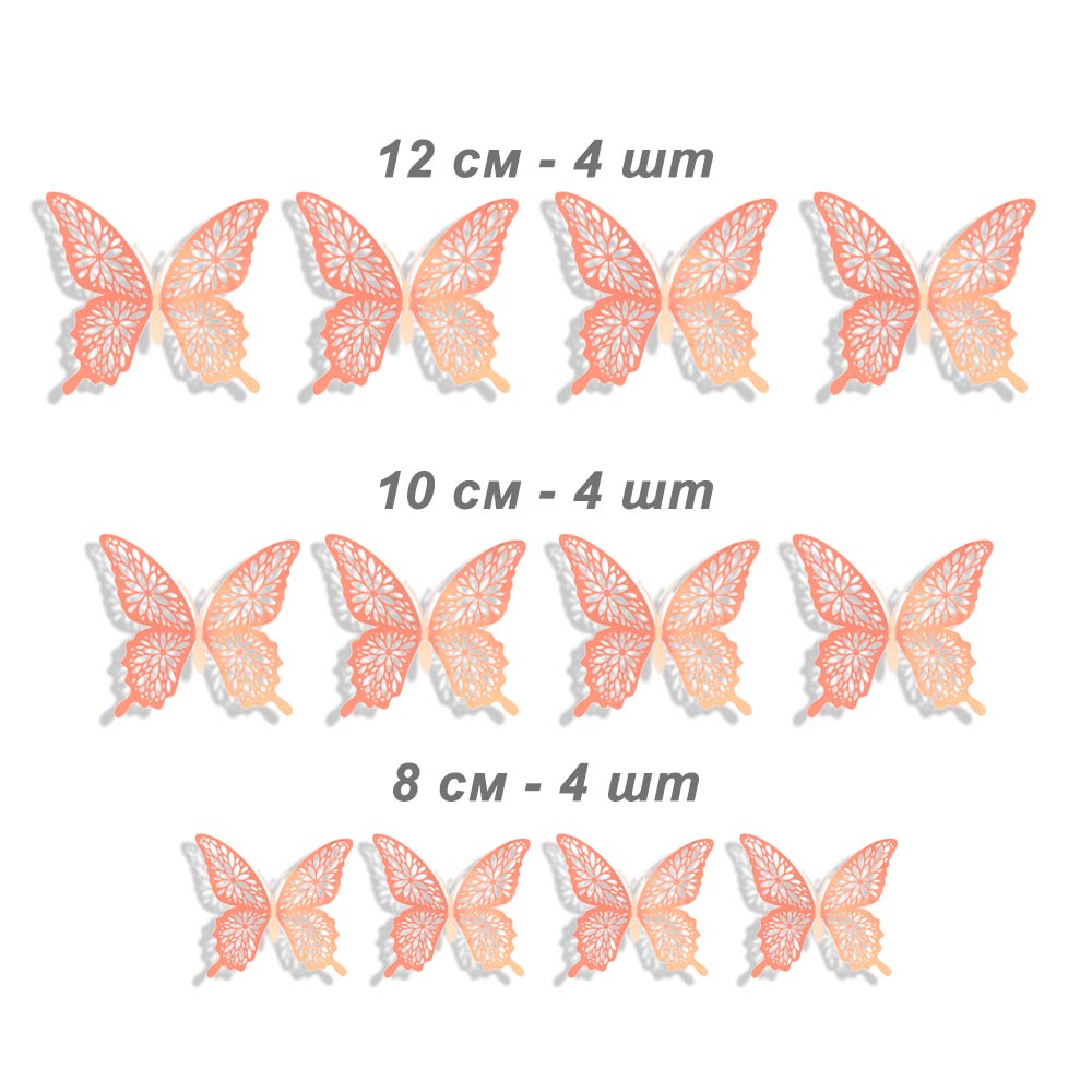 Наклейки Бабочки № 15 бумага металлик 12 шт розовое золото