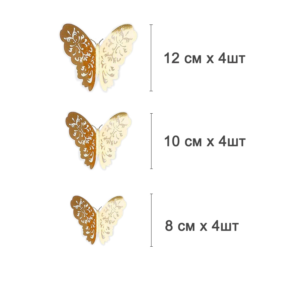 Наклейки Бабочки №2 12 шт бумага золото