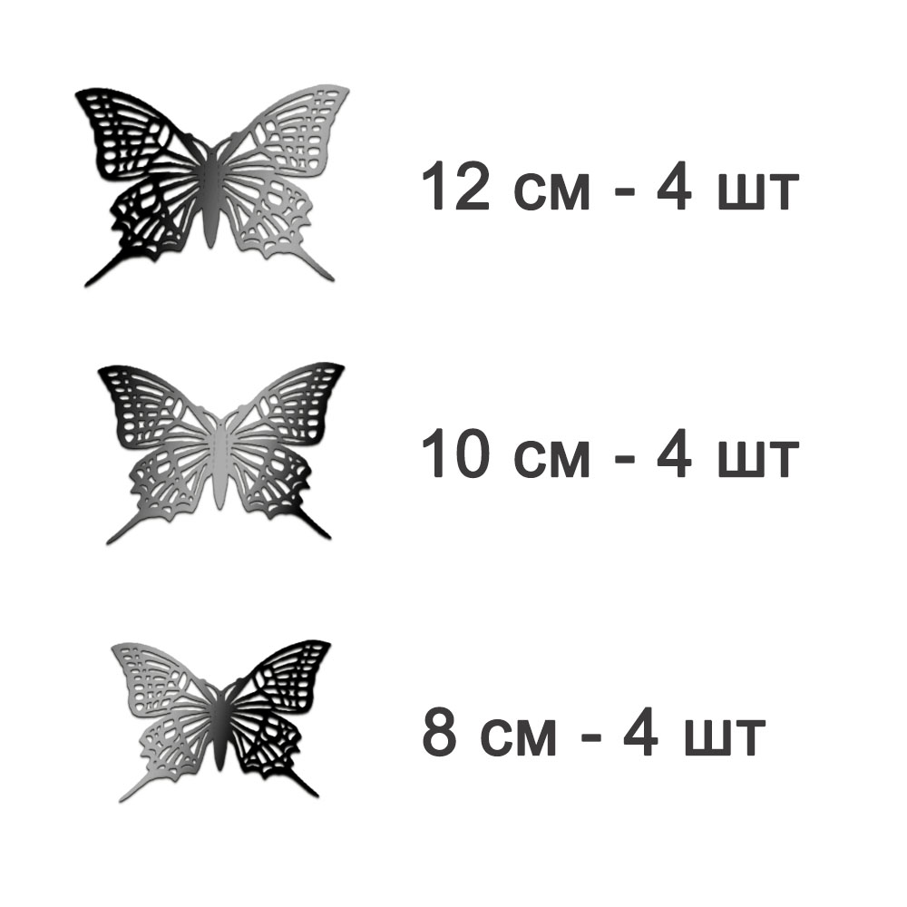 Наклейки Бабочки №4 12 шт бумага серый