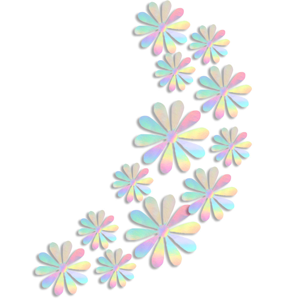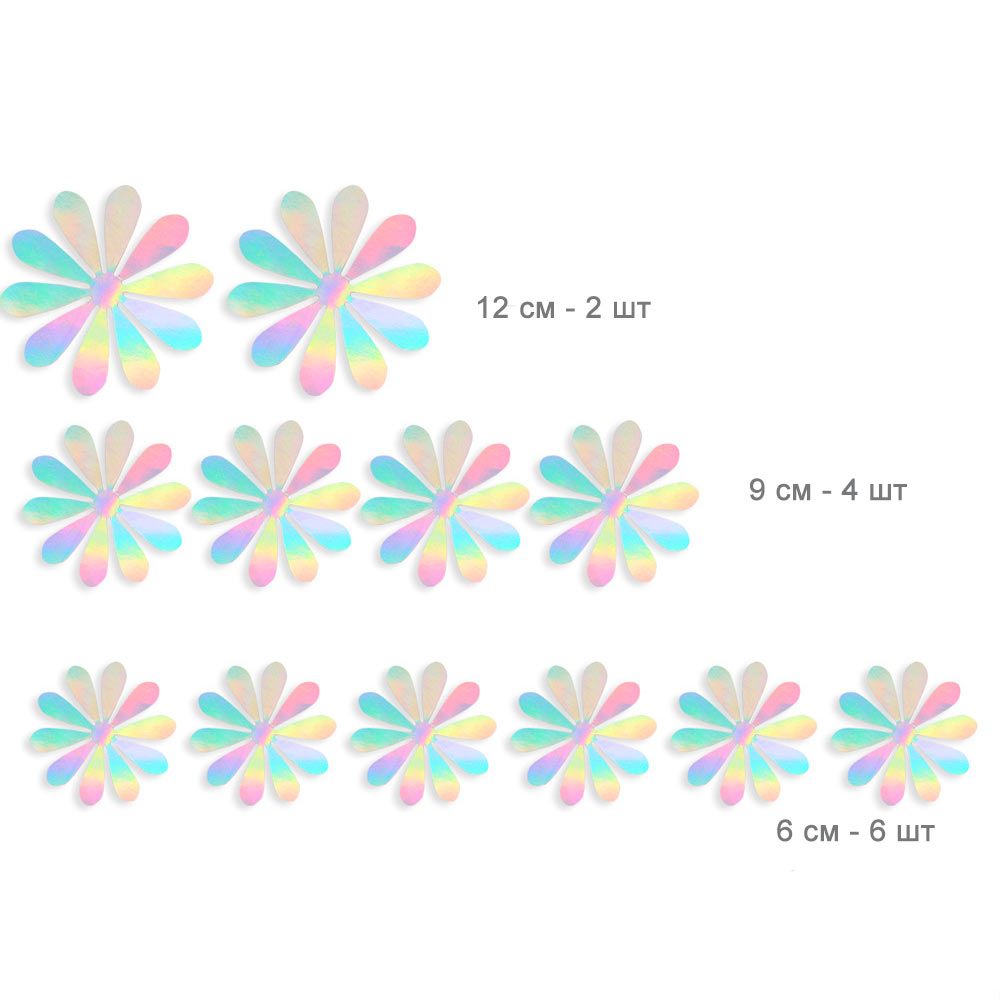 Наклейки Цветочки бумажные 12 шт голографическое серебро