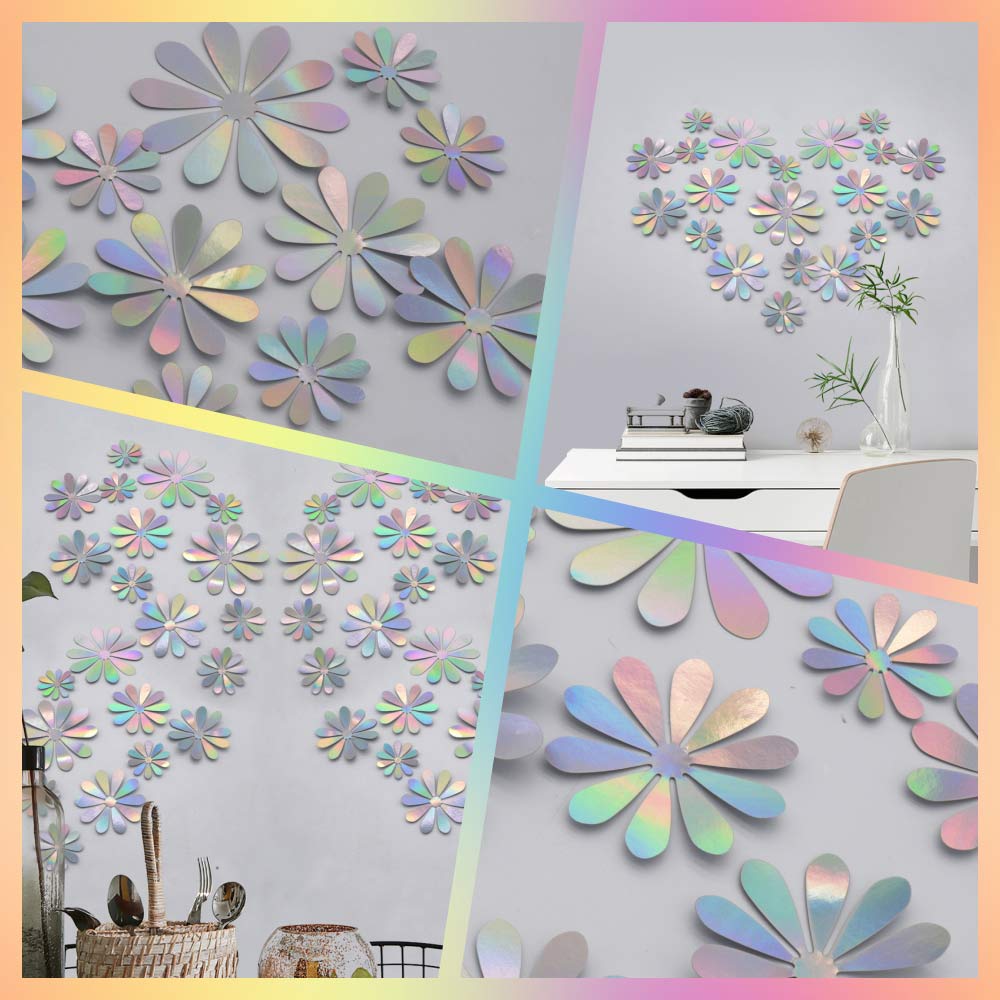 Цветочек выполнены из бумаги с эффектом металлик, крепятся с помощью силиконовых клейких кругов, которые входят в комплект.