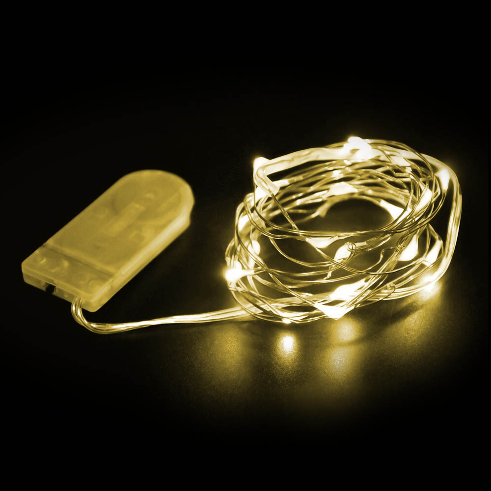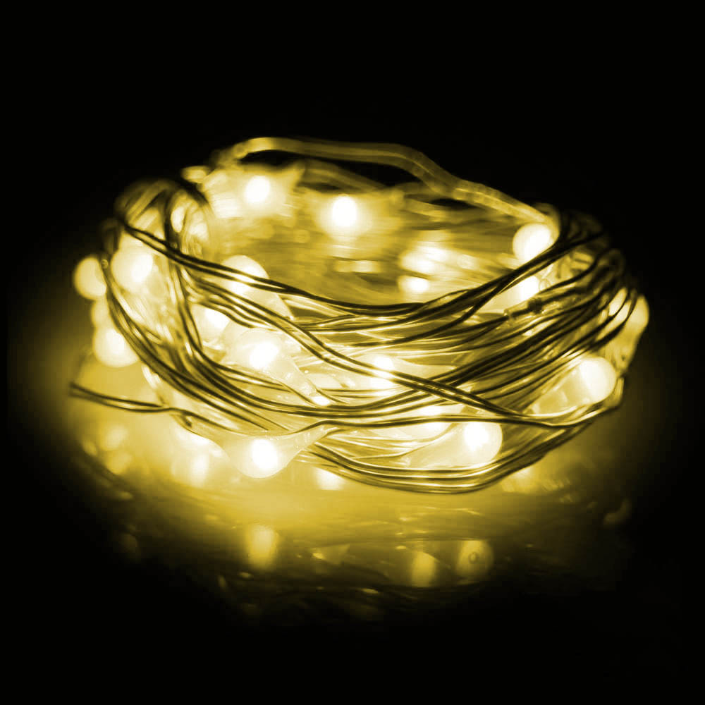 Нить "Роса" серебро, 3 м х 30 диодов, от батареек, желтый
