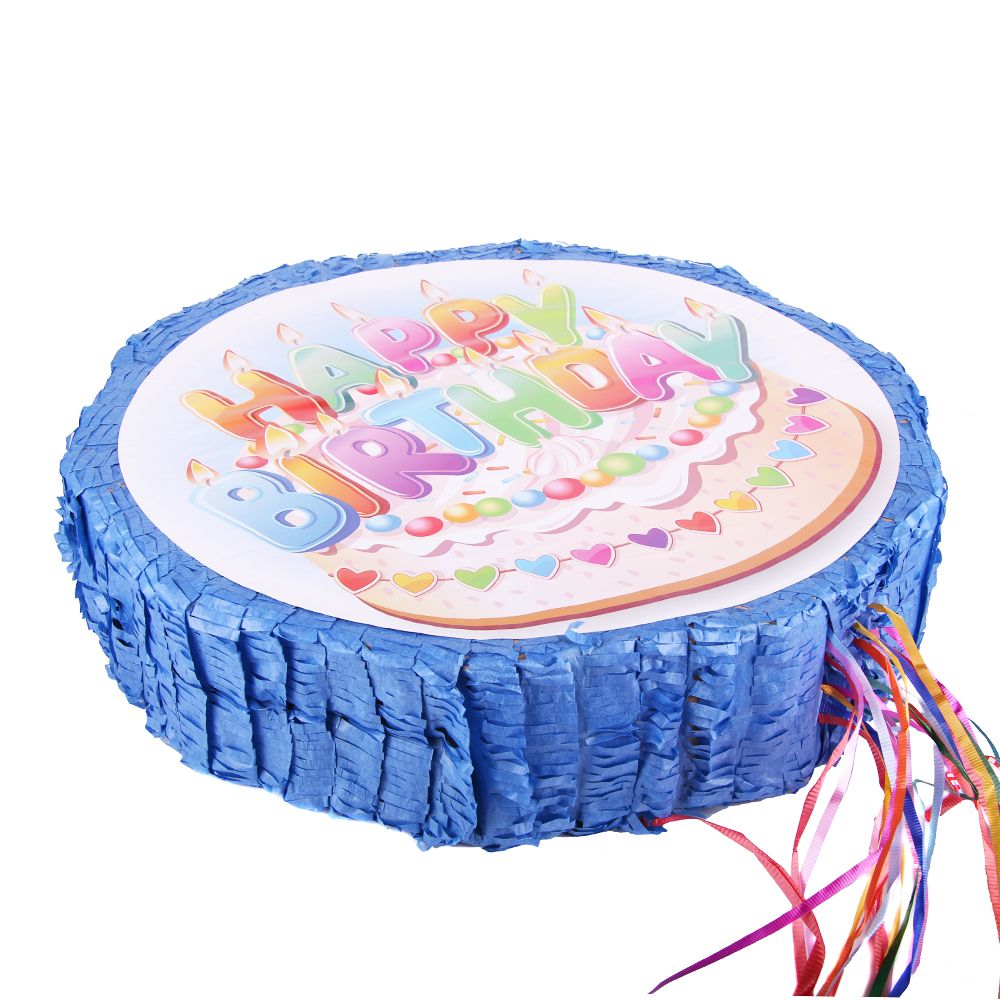 Пиньяту наполняют различными угощениями и игрушками (до 900 гр наполнителя) и подвешивают к потолку или на дерево. В отличие от традиционной пиньяты, пиньяту с лентами разбивать не надо. Нужно по очереди тянуть за специальные веревочки, только одна из которых раскроет пиньяту.Диаметр пиньяты -45 см