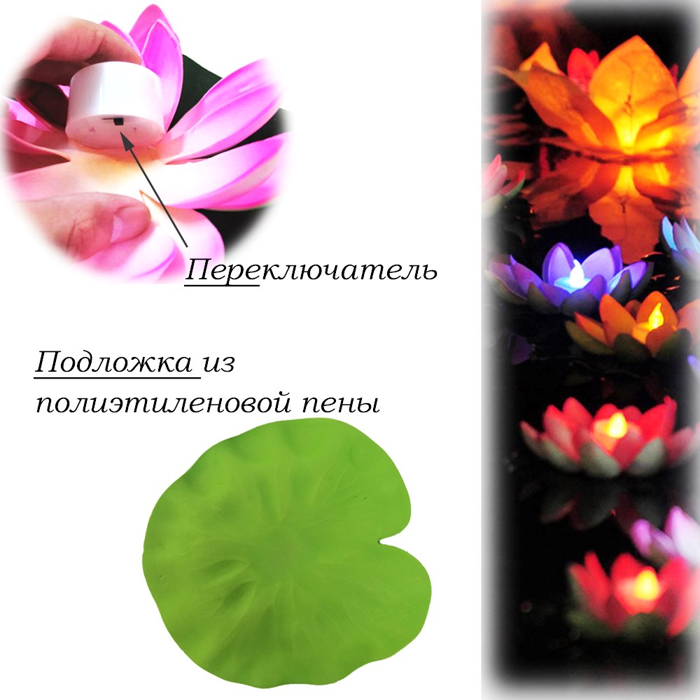 Плавающий фонарик легко держится на воде благодаря пенопласту, расположенному под цветком.