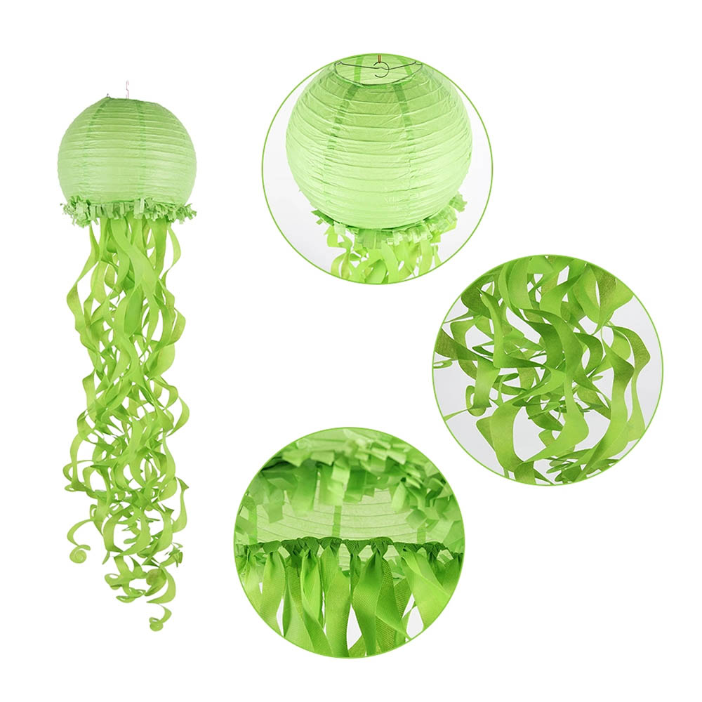 "Подвесной фонарик Медуза — красивый декор для различных вечеринок и праздников. Так как изготовлен из экологичных безопасных материалов, то может использоваться на детских мероприятиях.