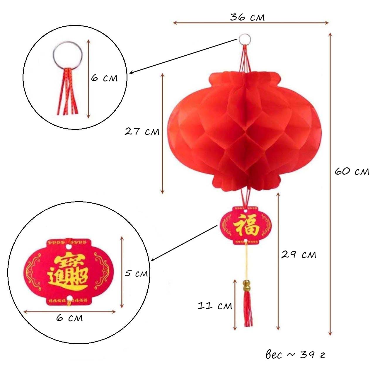 Простота в использовании: Бумажные фонарики имеют форму пчелиных сот с плотными отверстиями, их легко разворачивать и сворачивать. Раскройте концы и склейте их вместе (белая липкая двусторонняя лента на одном конце). Красный бумажный фонарь с кольцом и веревкой сверху легко подвешивается и снимается.