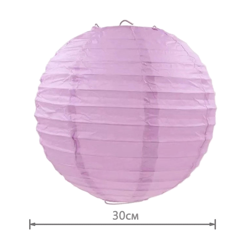 Диаметр 30 см. Цвет — светло-сиреневый new, прекрасно сочетается с фонариками других оттенком.