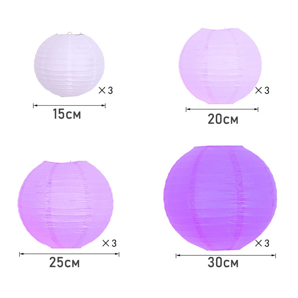 Этот набор фонариков — идеальный декор для свадебного приема, дня рождения, любого торжества. Они просты в монтаже. Легко хранятся. Можно использовать многократно.