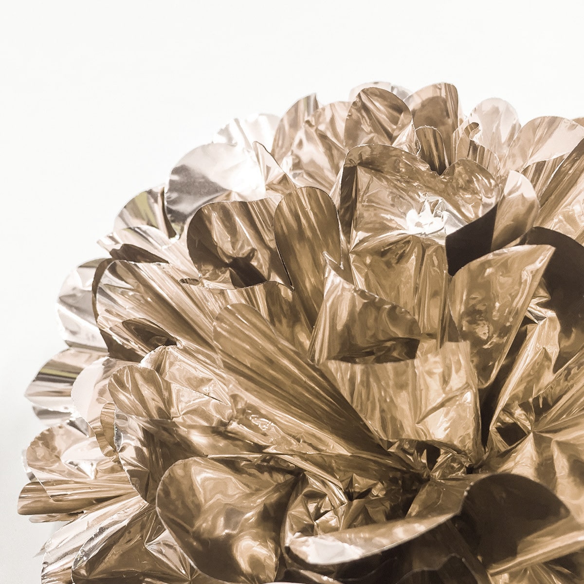 Помпон фольгированный шампань диаметром 30 см — крупный блестящий акцент, который создаёт впечатляющий визуальный эффект и праздничную атмосферу. Отлично подойдёт для дней рождений, свадеб, вечеринок и тематических мероприятий.