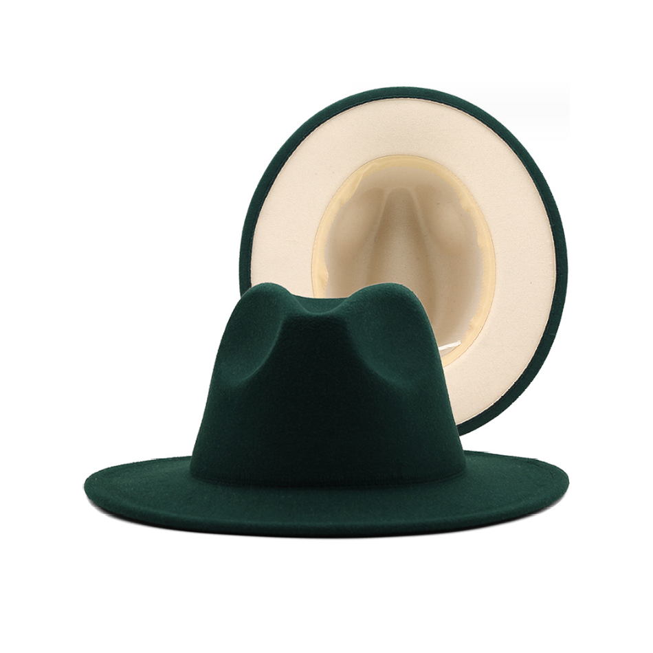 Шляпа Федора фетровая 2 цвета, темно-зеленый+бежевый