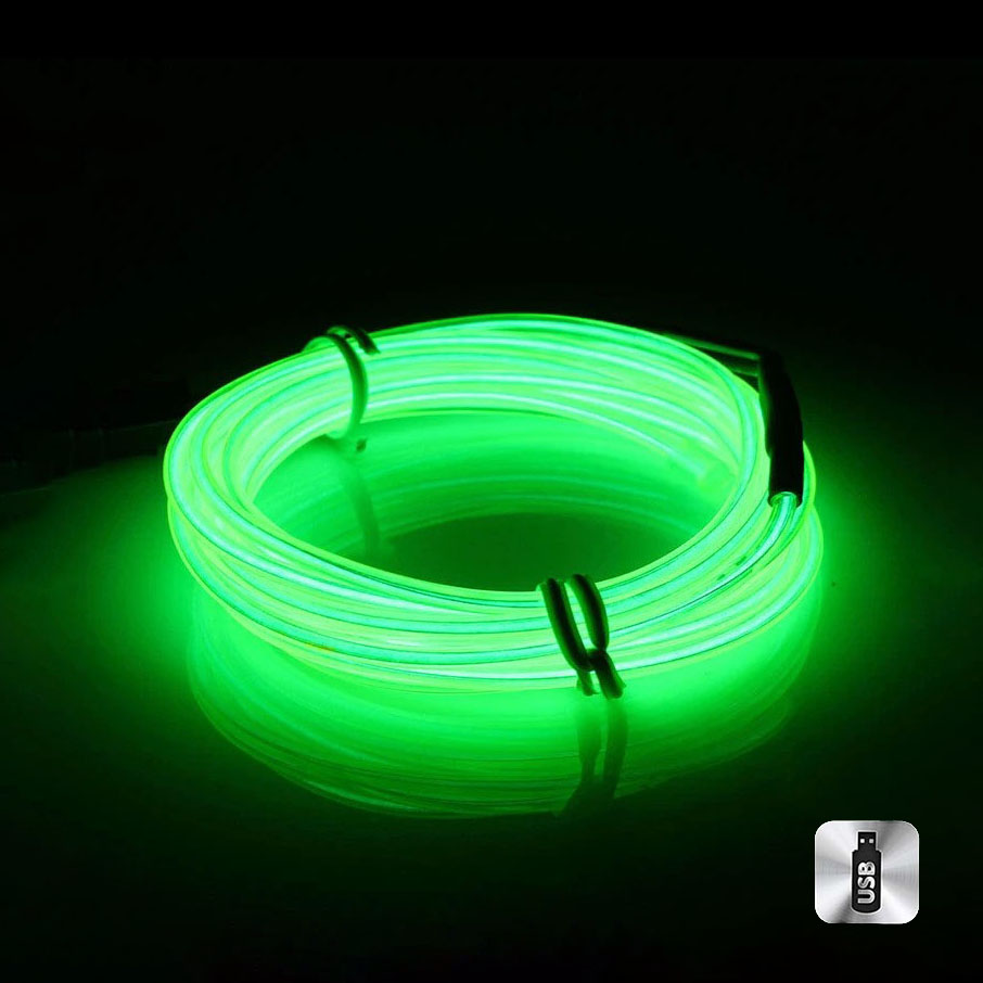Шнур неоновый светящийся от USB 4 м, лайм