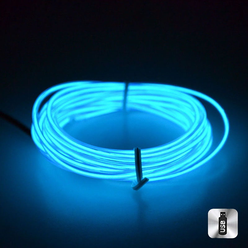 Шнур неоновый светящийся от USB 4 м, синий