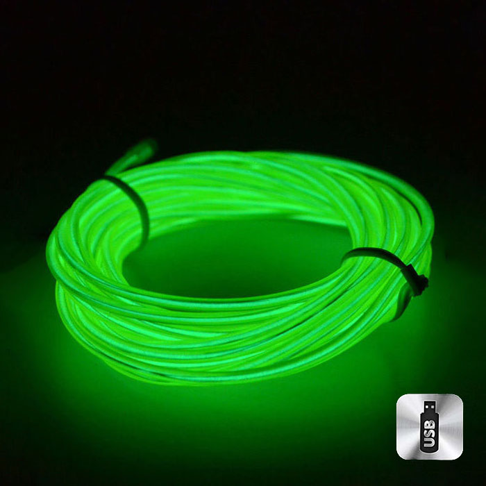 Шнур неоновый светящийся от USB 5 м, зеленый