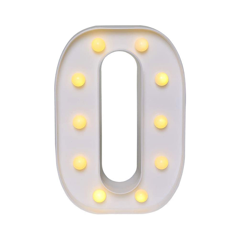 Цифра 0 светодиодная 21 см, от батареек , теплый белый