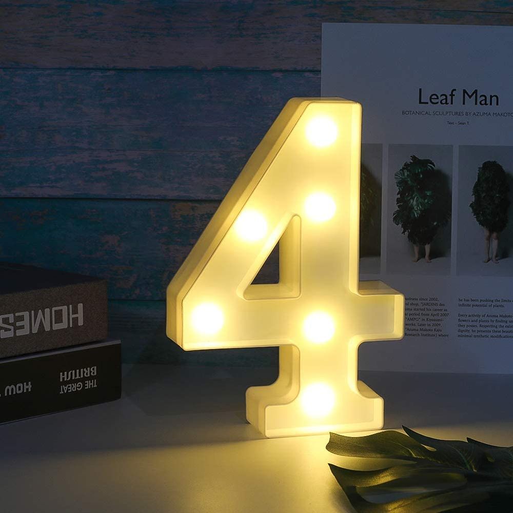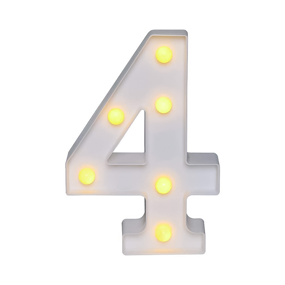 Цифра 4 светодиодная 21 см, от батареек , теплый белый