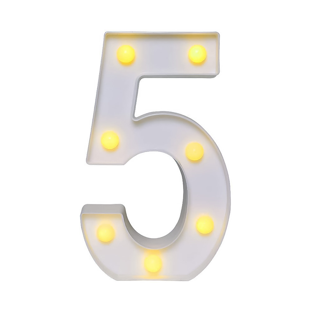 Цифра 5 светодиодная 21 см, от батареек , теплый белый