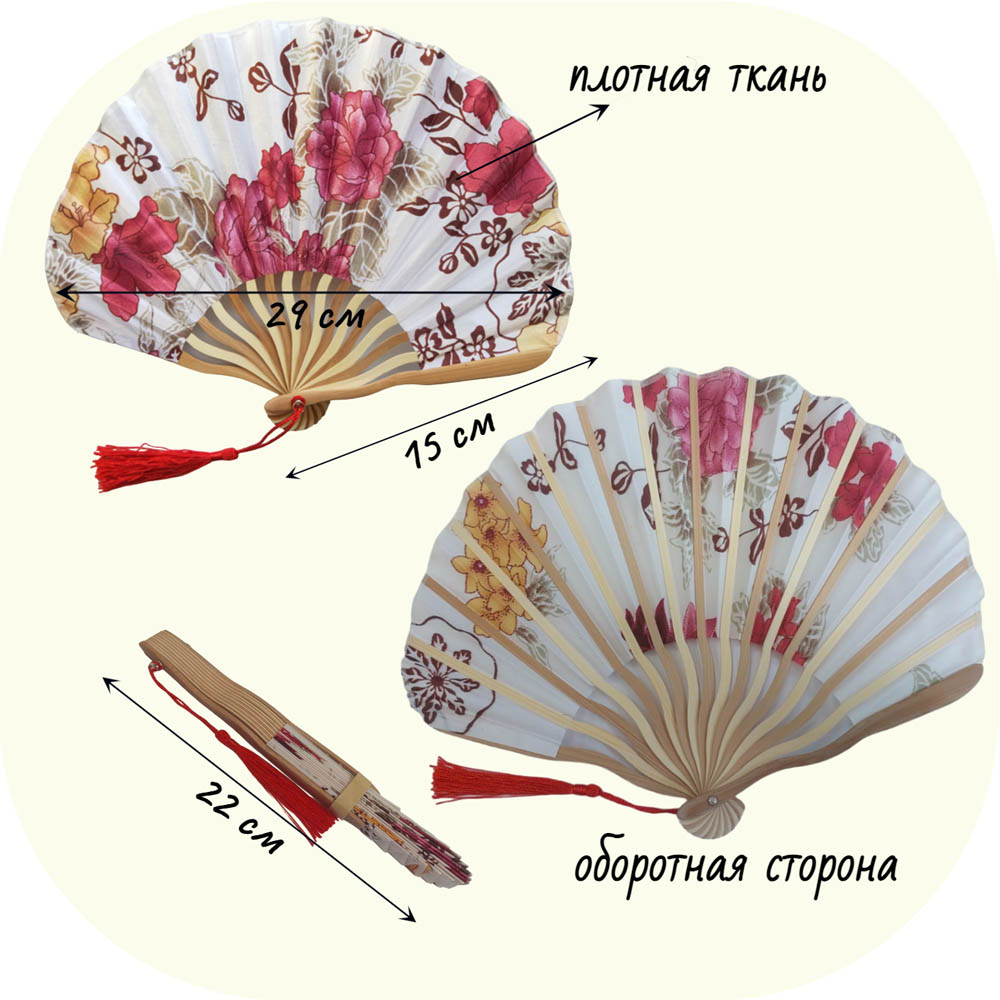 Веер круглый с цветочным узором 29х15 см, №13