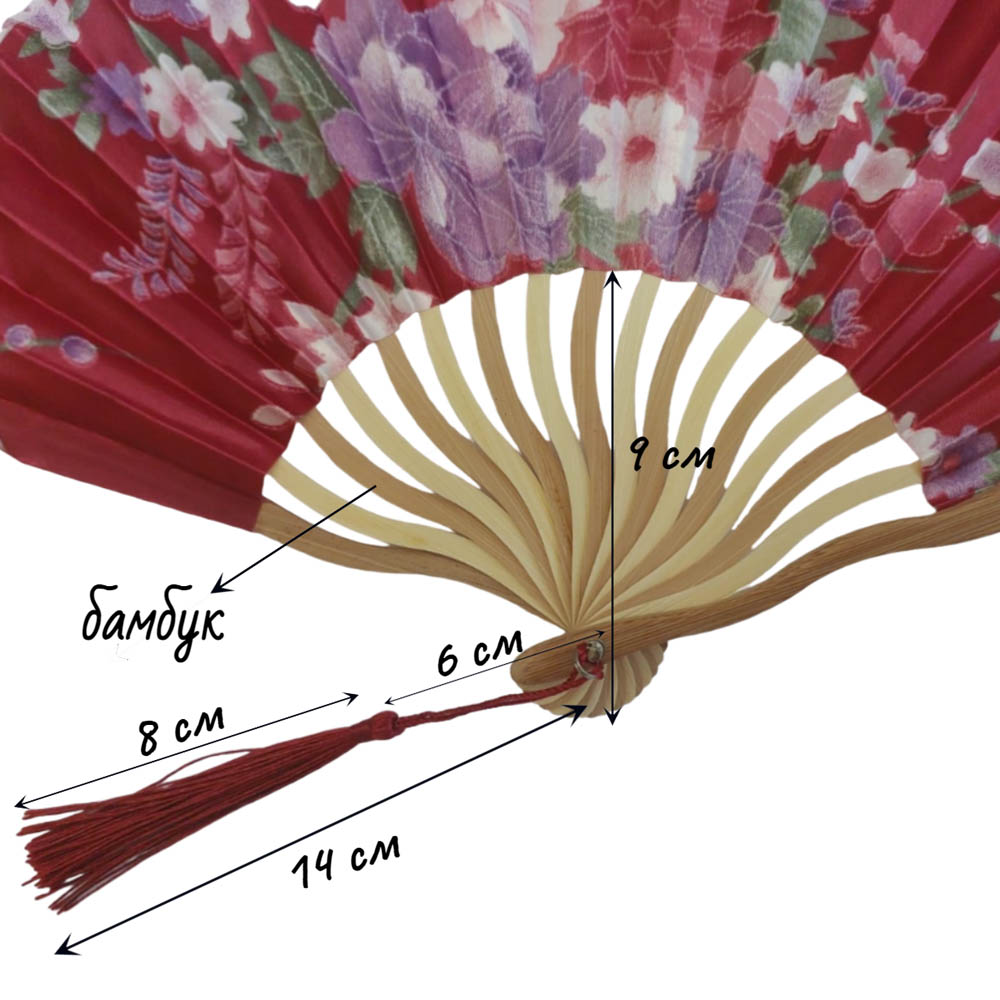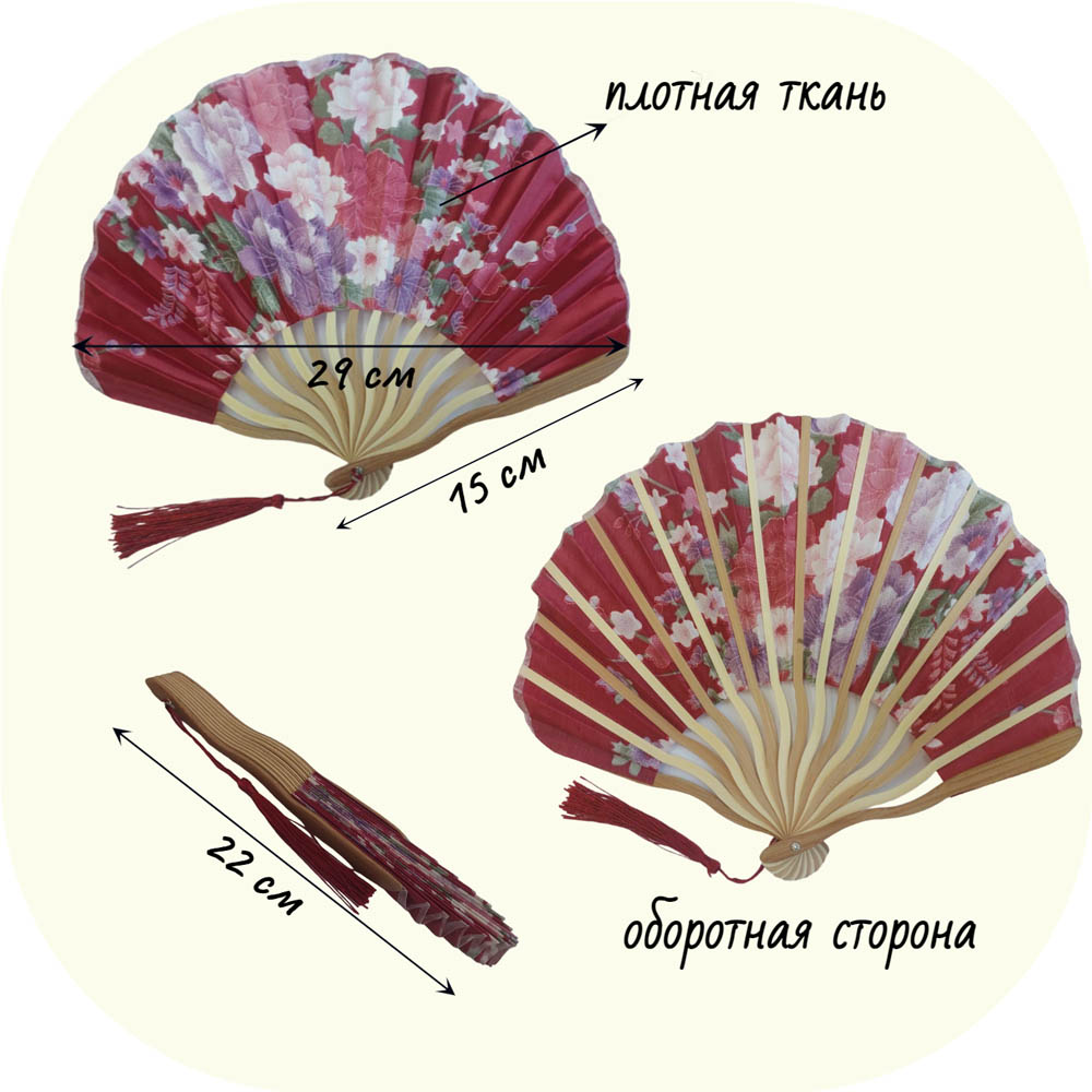 Веер круглый с цветочным узором 29х15 см, №14